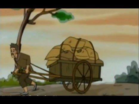 Có một ông Lão kéo một xe gạo nặng nề đang lê bước trên đường vừa đi vừa thở hổn hển...Trong có vẻ rất mệt bánh xe chao đảo va vào một cục đá bên đường , làm cả xe gạo đổ nhào xuống hết...Ông lão cố hết sức nâng xe gạo lên , nhưng trong tình thế bất lực và mệt mõi mồ hôi nhẽ nhại , trời thì nắng chang chang...Thế là Ông ngồi bệch xuống đất luôn...